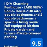 Daire Como şehir merkezine yürüyerek 25 dakika uzaklıktadır. Bu tesis, Volta Deniz Feneri'a arabayla 10 dakikalık mesafededir. I D'A Charming Penthouse - Lake View dairesine uzak olmayan Il Tennis restaurant&beverage, İtalyan mutfağıyla hizmet vermektedir. Como-Brunate Kablolu Treni'dan kısa bir sürüş mesafesindedir.